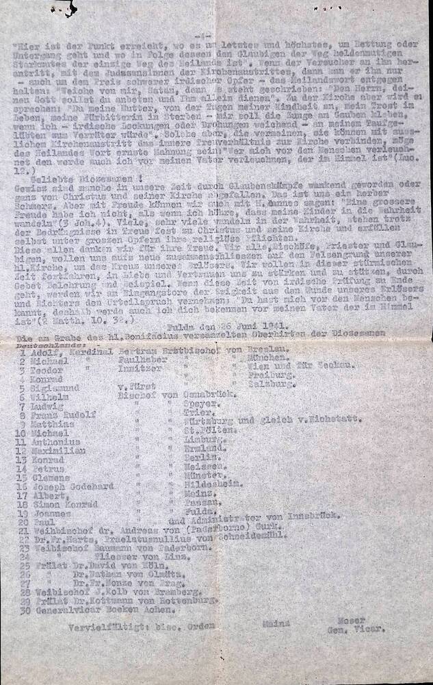 Vel, doorslag, "Nachstehender Hirtenbrief ist am Son...