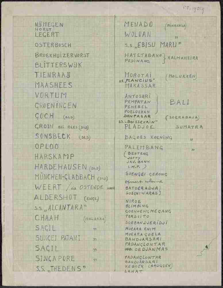 Vel met overzicht van plaatsen waar H.J. Brouwers ge...
