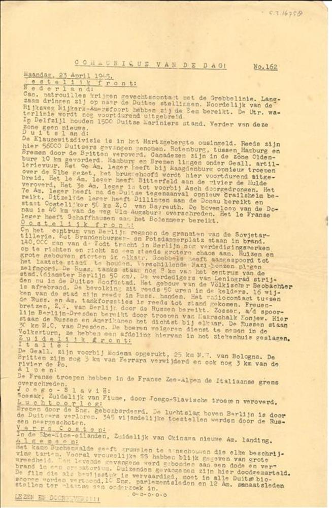 Communique van de dag, Nr. 162, Maandag 23 april 194...