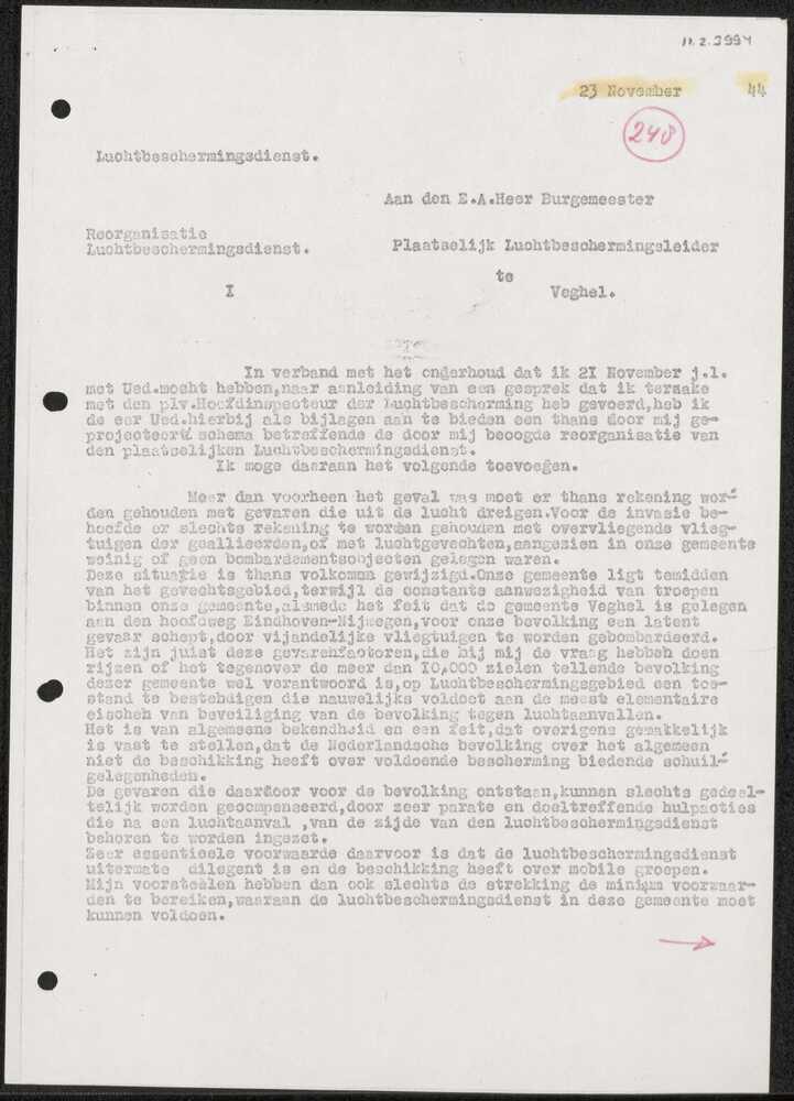 Brief, Luchtbeschermingsdienst gemeente Veghel, 23 n...