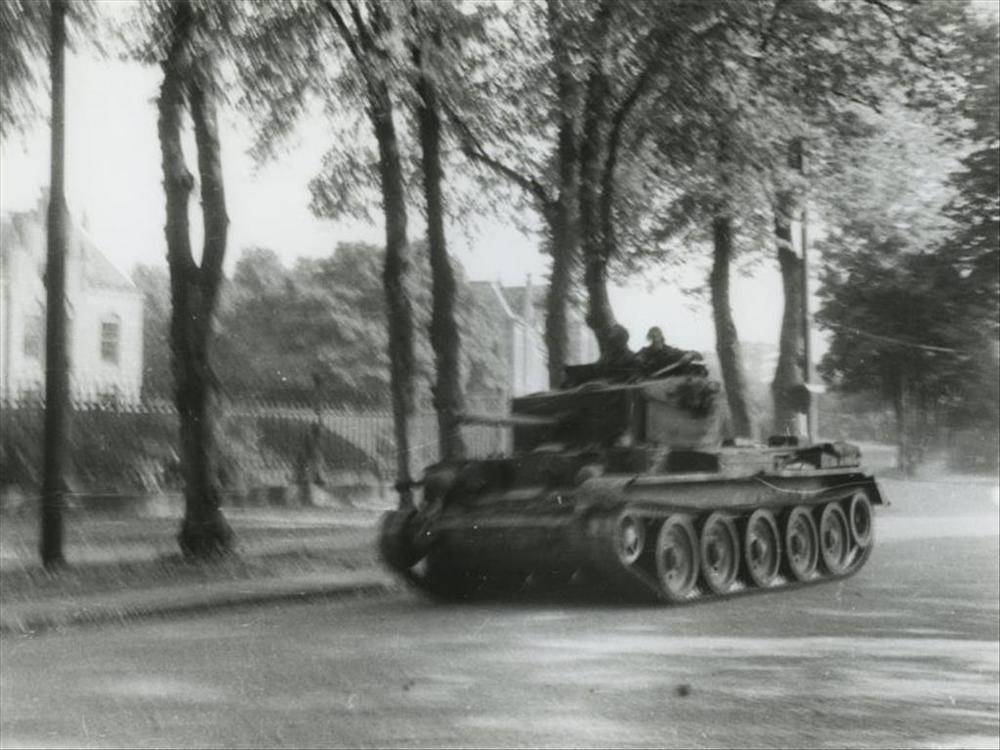 rijdende Britse Cromwell tank te Nijmegen, Groesbeek...