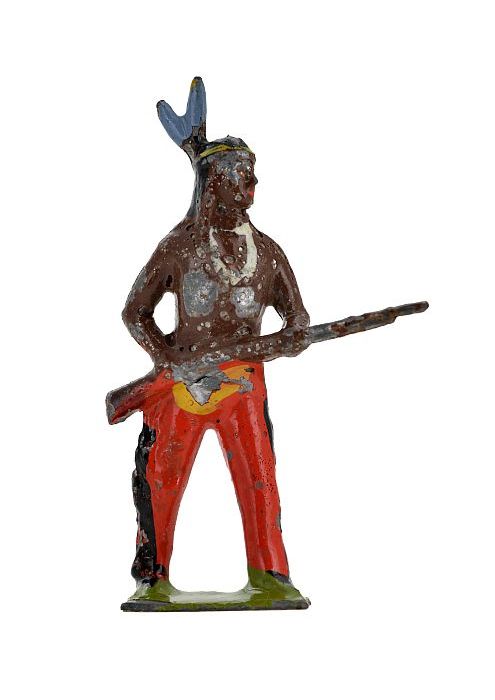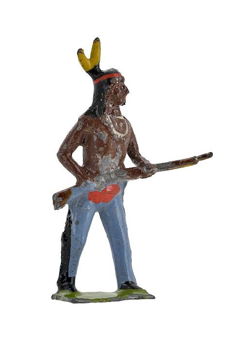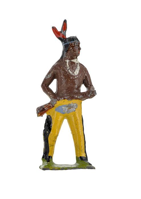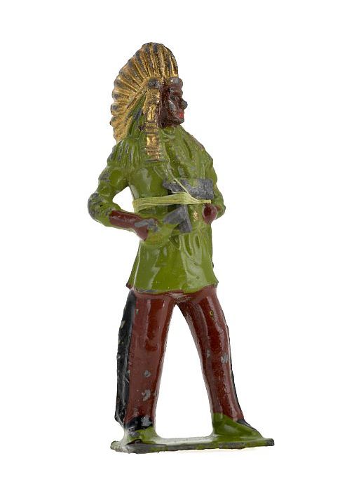 Tinnen figuur in de vorm van een opperhoofd der 'ind...