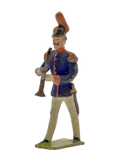 Tinnen figuur in de vorm van een Pruisische klarinet...