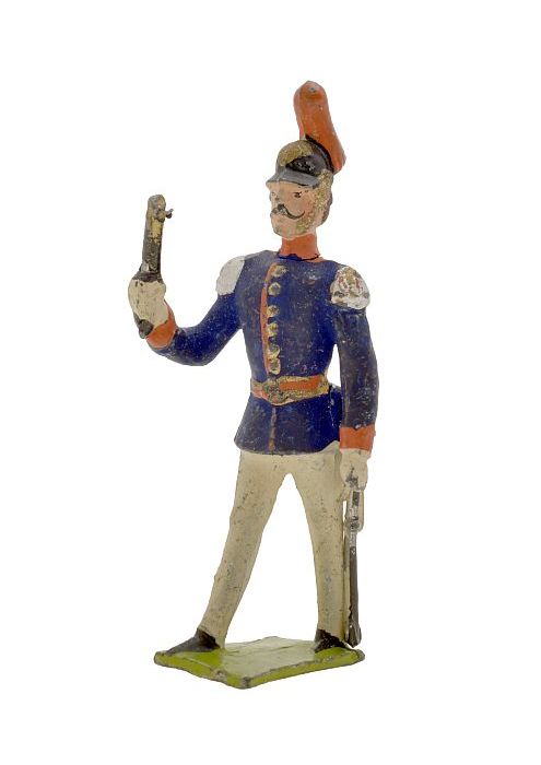 Tinnen figuur in de vorm van een Franse soldaat te p...