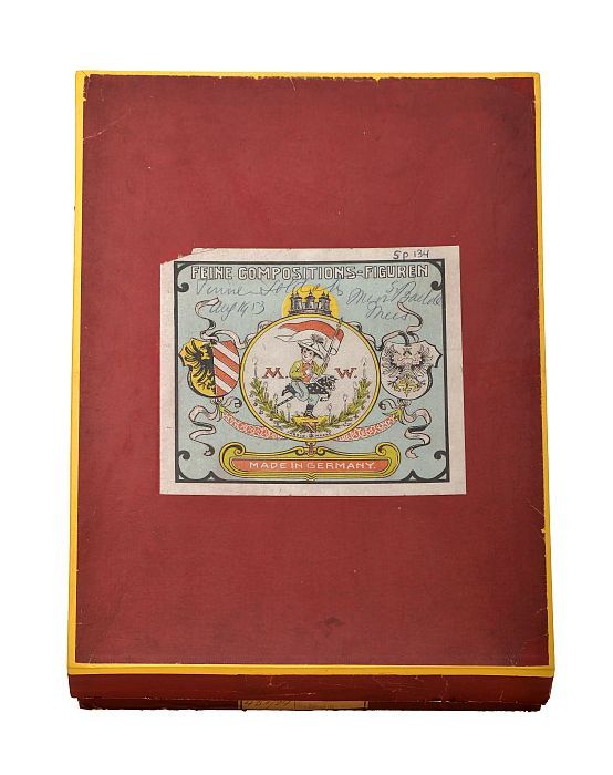 Doos waar tinnen figuren in verkocht en bewaard werden