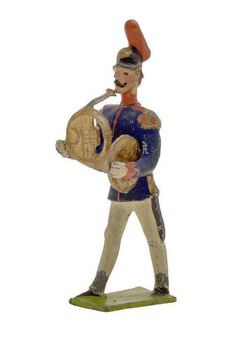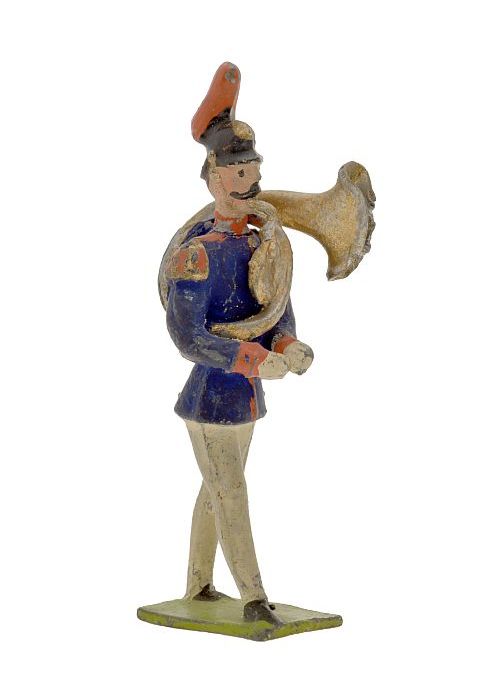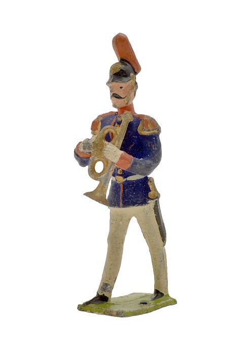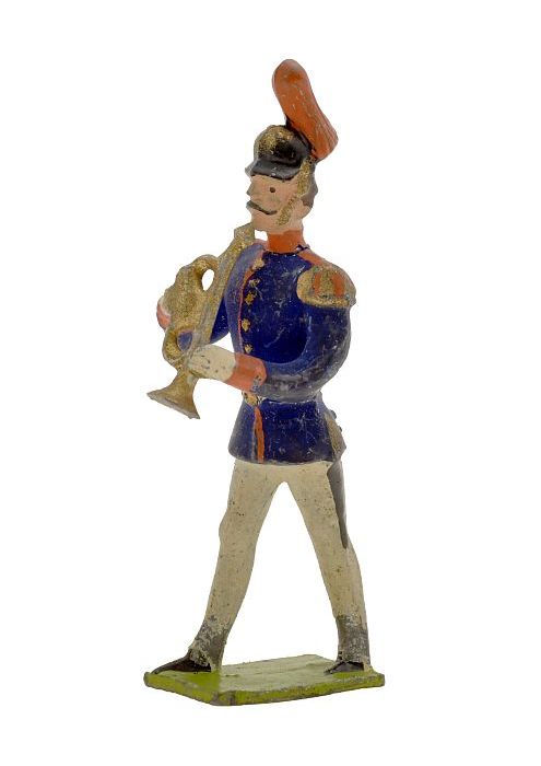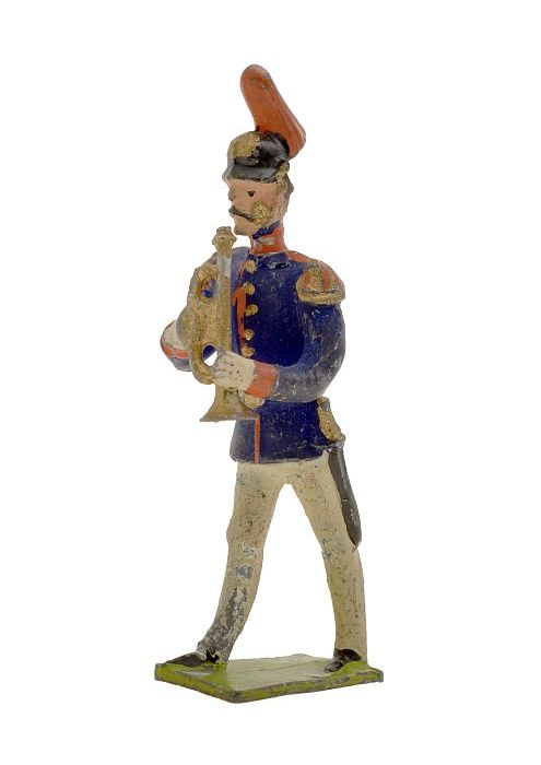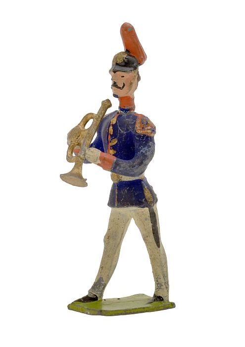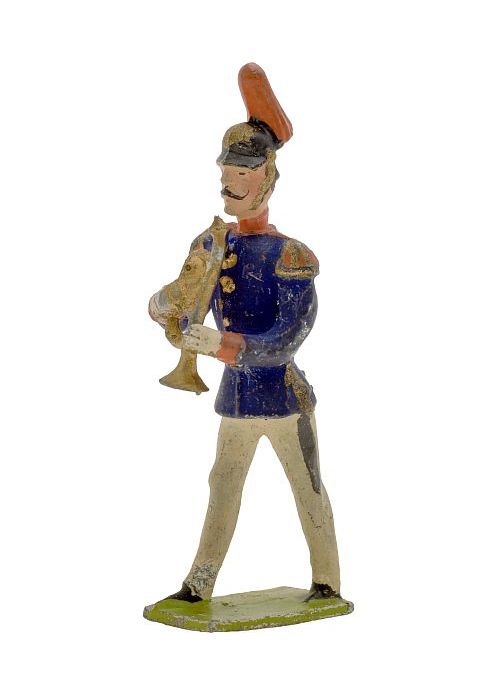 Tinnen figuur in de vorm van een Pruisische trompett...
