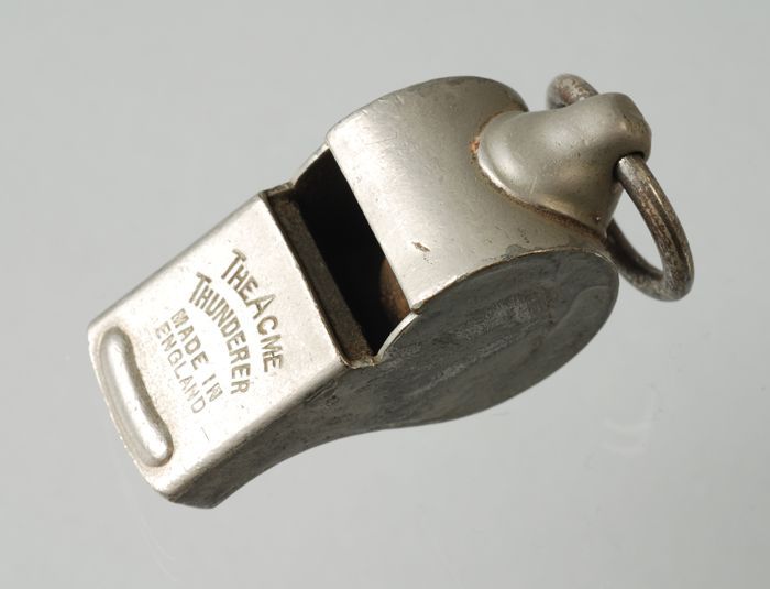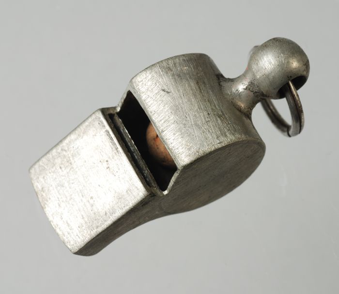 Metalen fluit met houten kogel, "The Acme Thunderer"