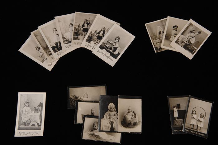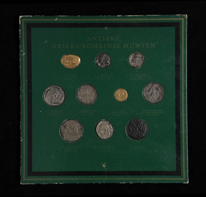 Groene kartonnen verzamelkaart met tien namaak antie...