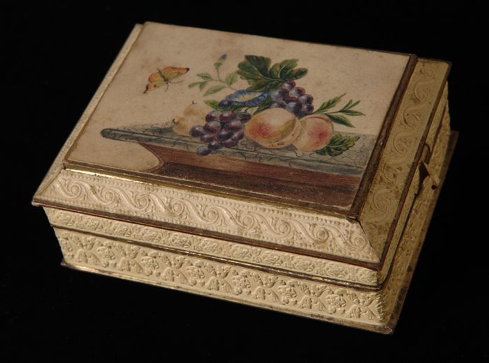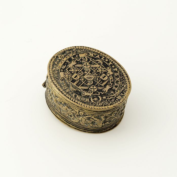 Ovaal koperen tabaksdoosje met portret van prins Mau...