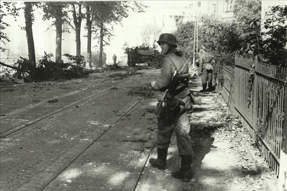 Duitse soldaat tijdens gevechten op de Utrechtseweg ...