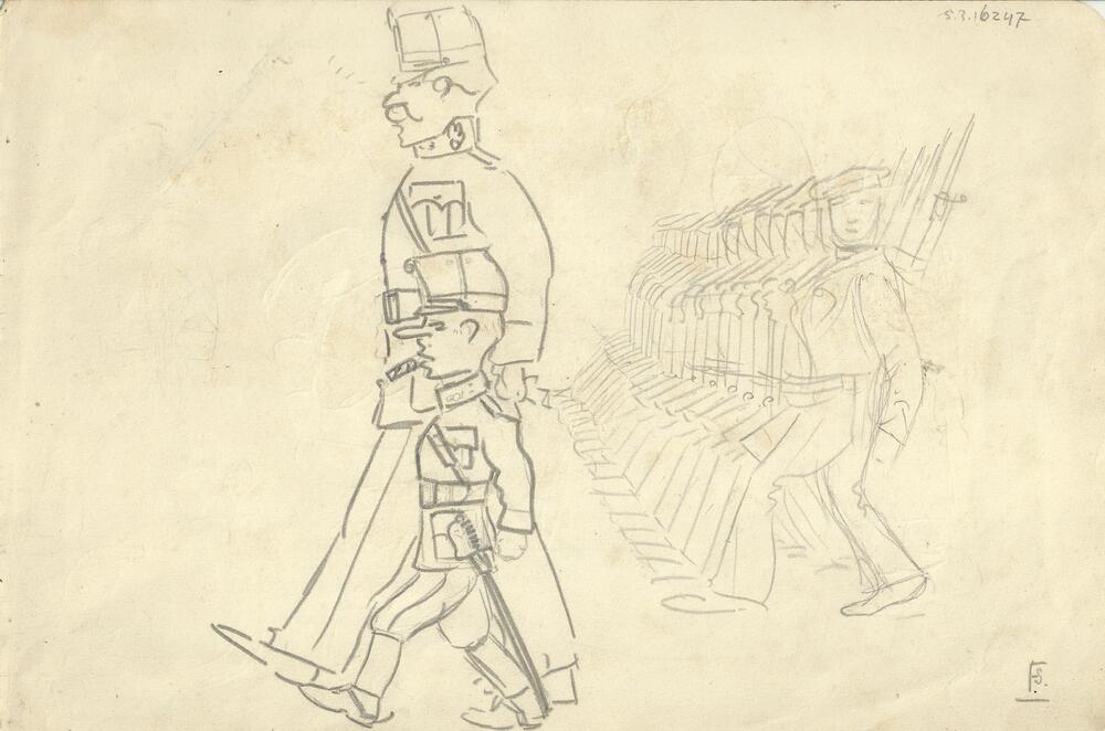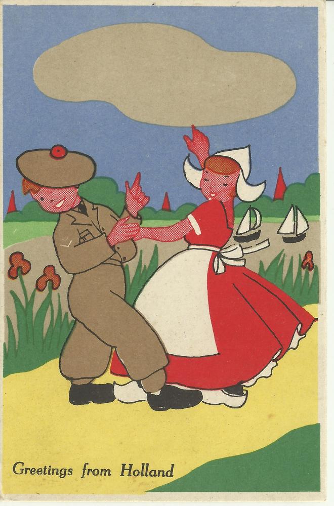 Vel met tekening (cartoon) twee Nederlandse officier...
