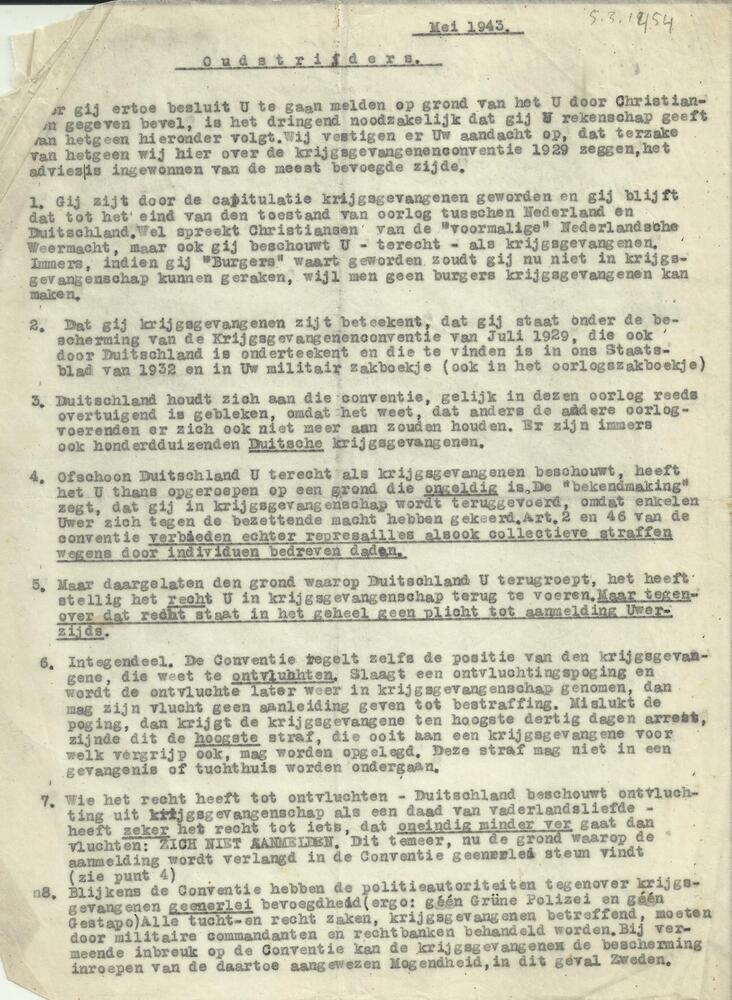 Map Illegaliteit - Doorslag: 2 vel Oudstrijders! mei...