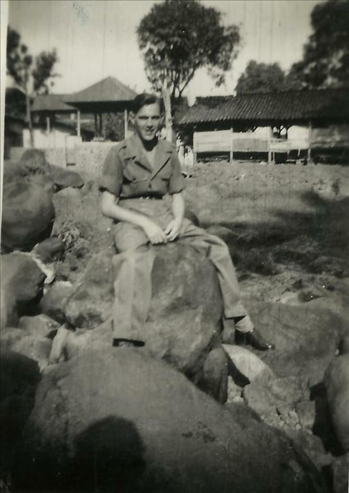 Nederlands Indië; militair, rotsblok, gebouw