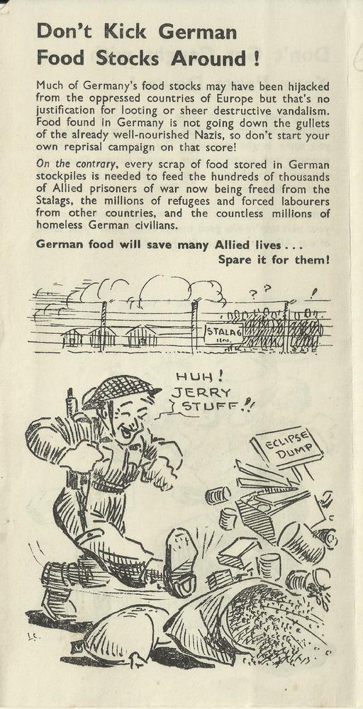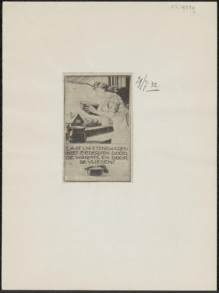 Vel met opgeplakte advertentie: "Laat uw etenswaren ...