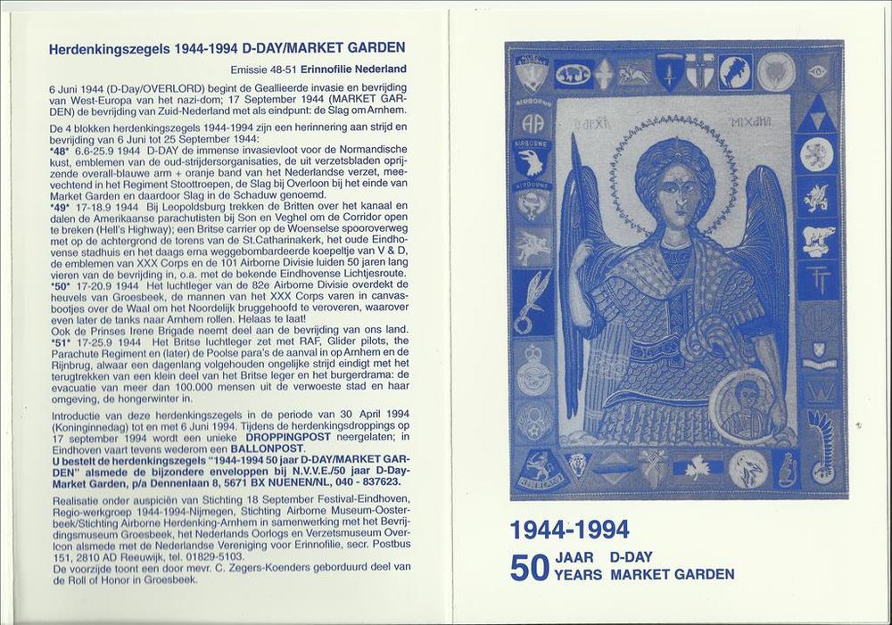Kaart herdenkingspostzegels 50 D-Day Market Garden 1...