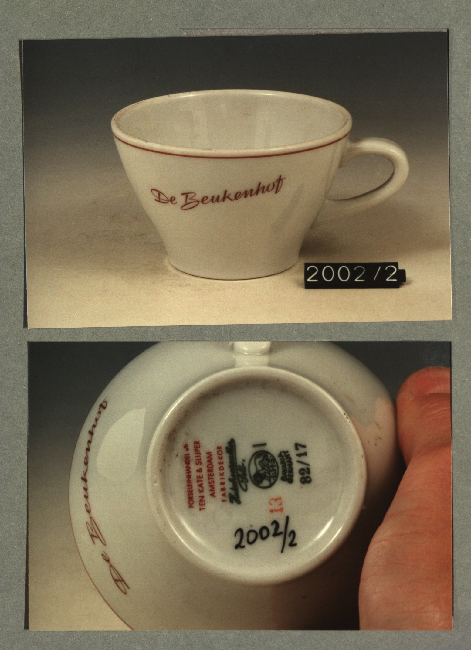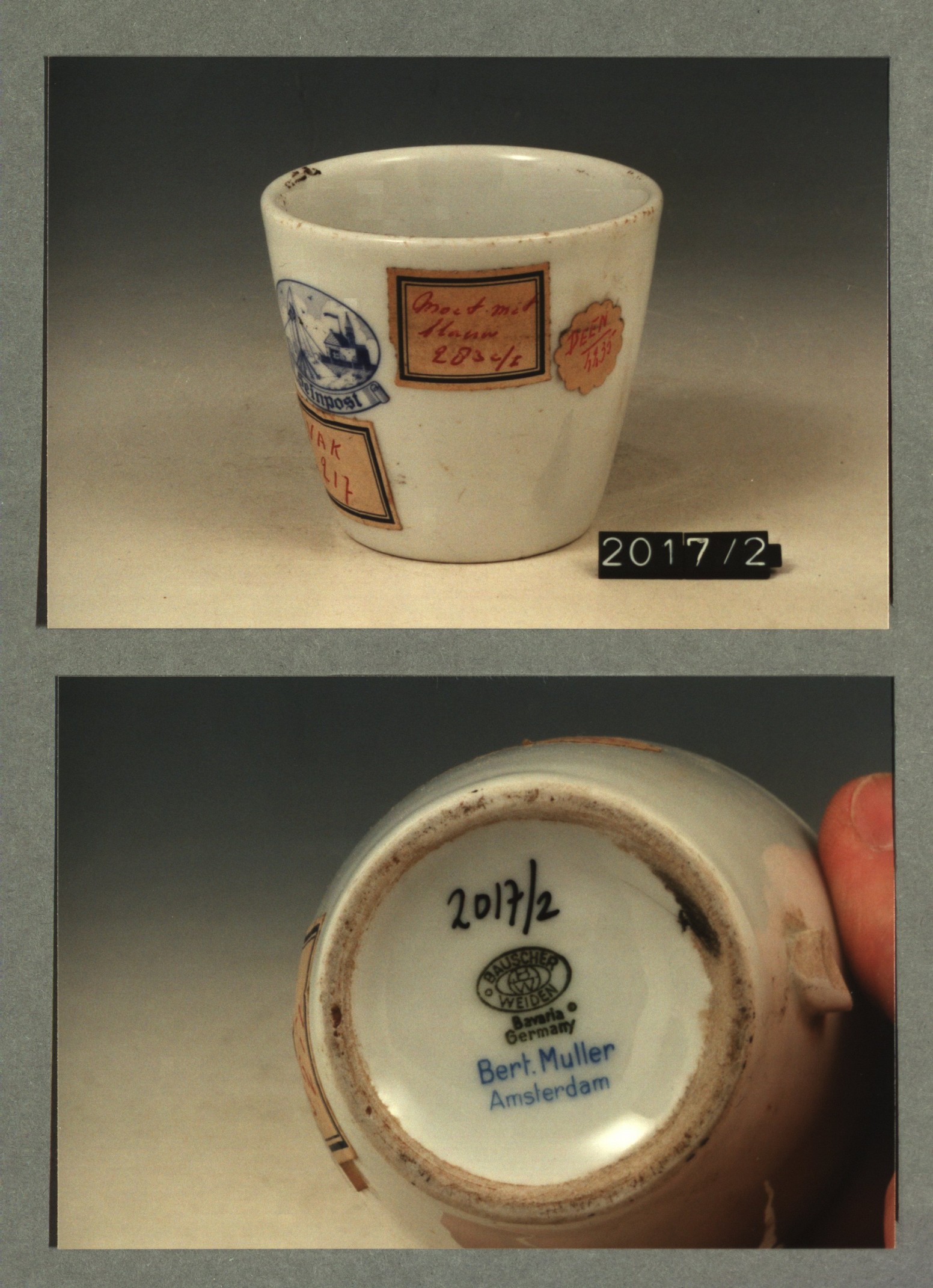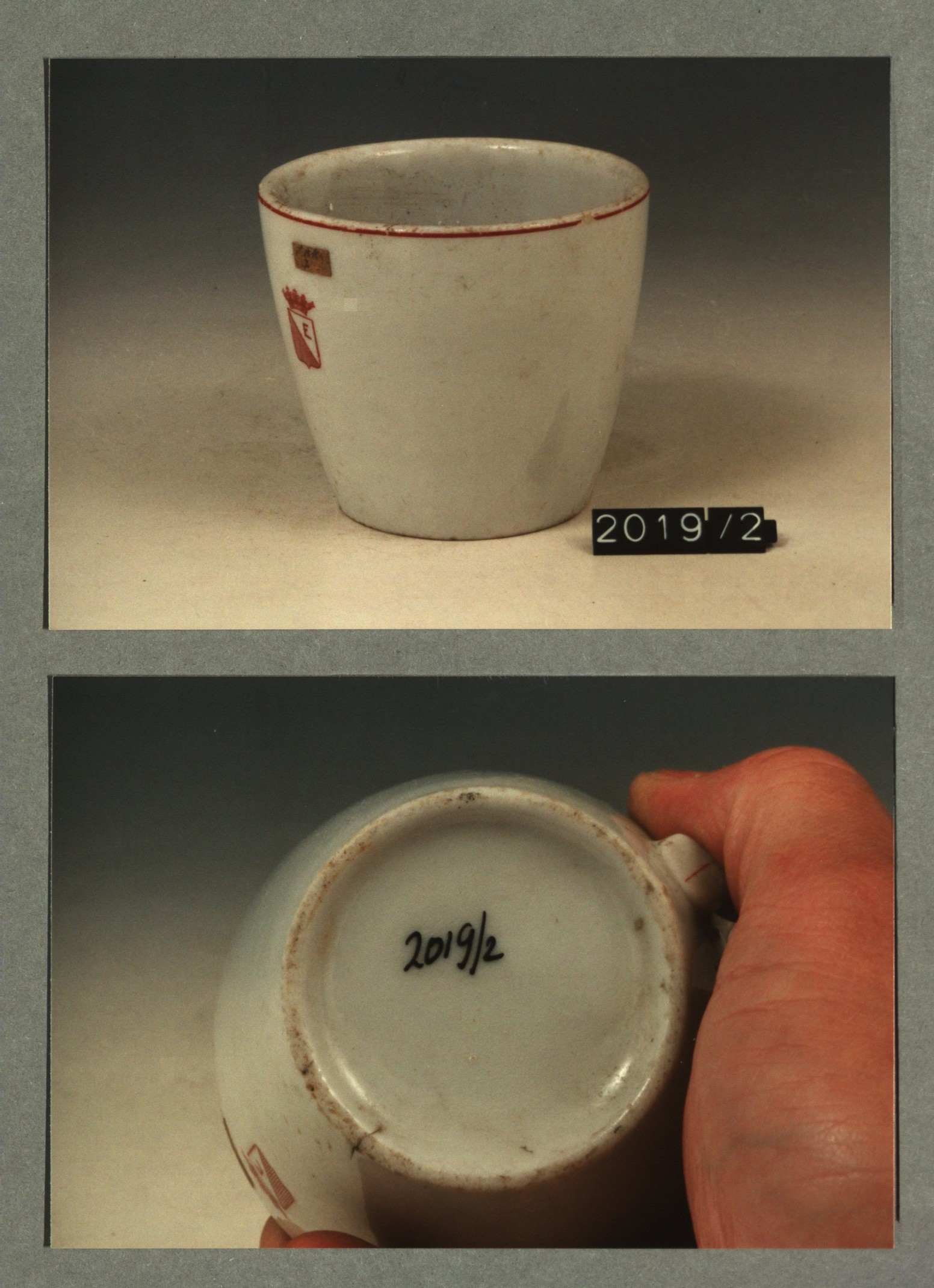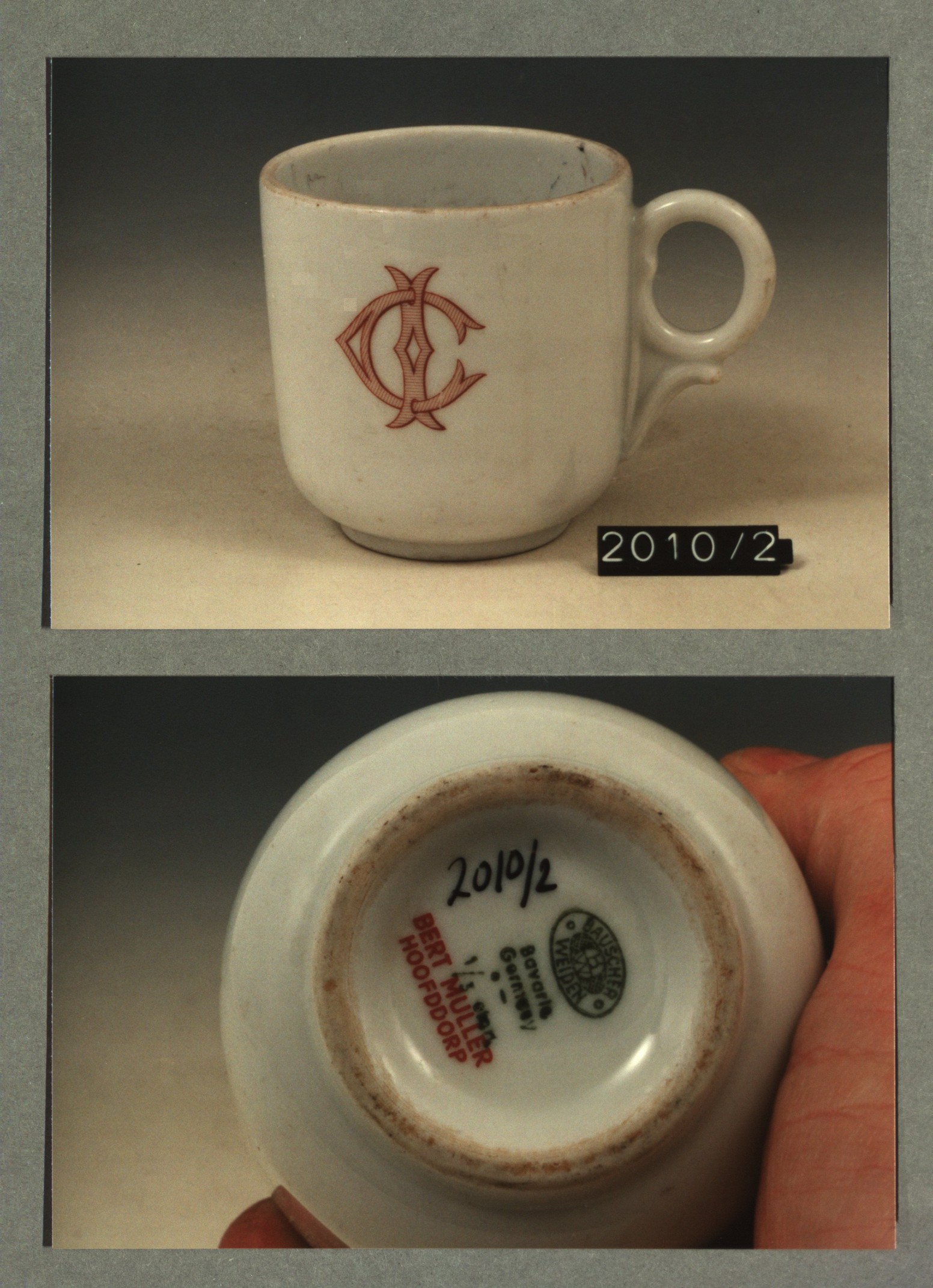 Kop met opschrift met decor E wapen