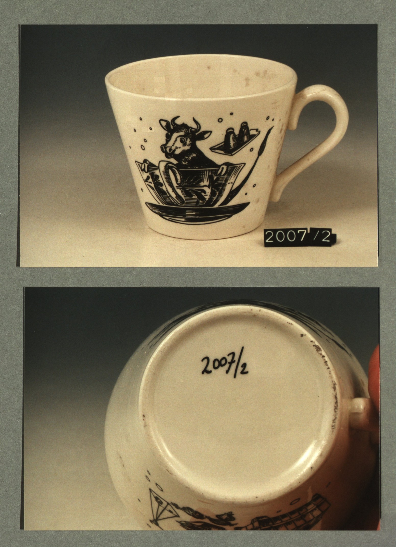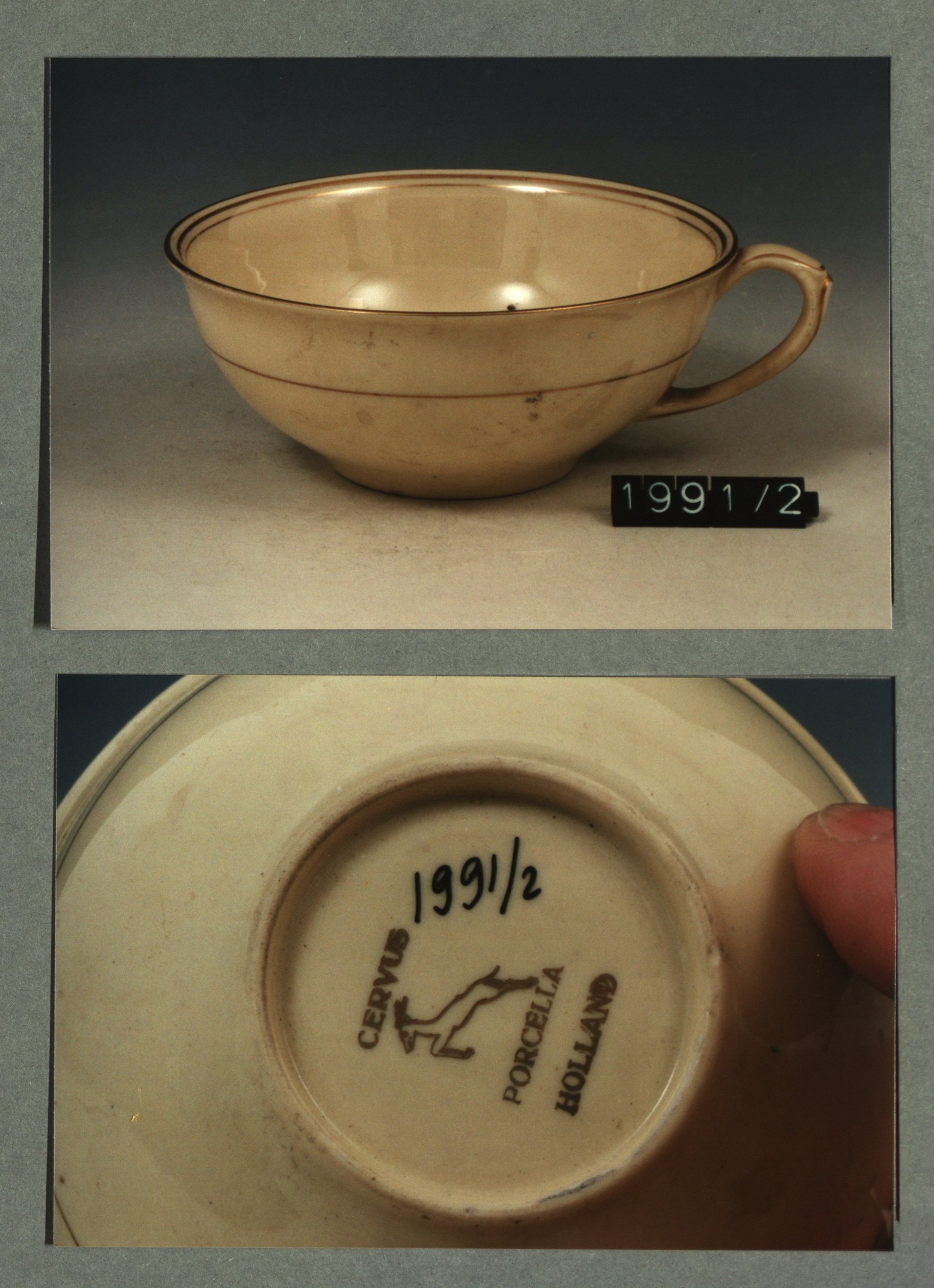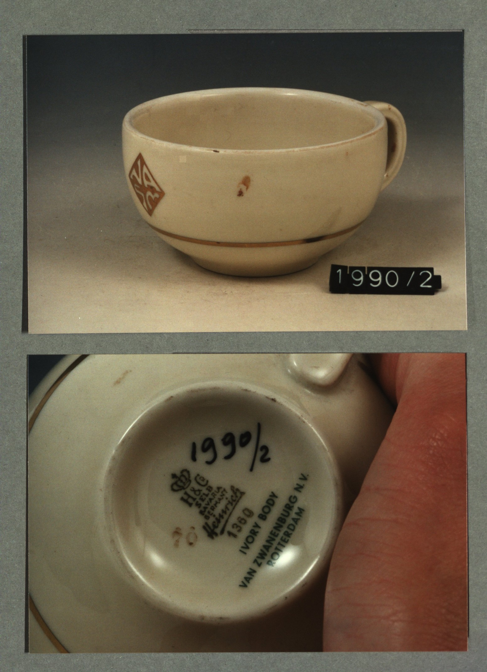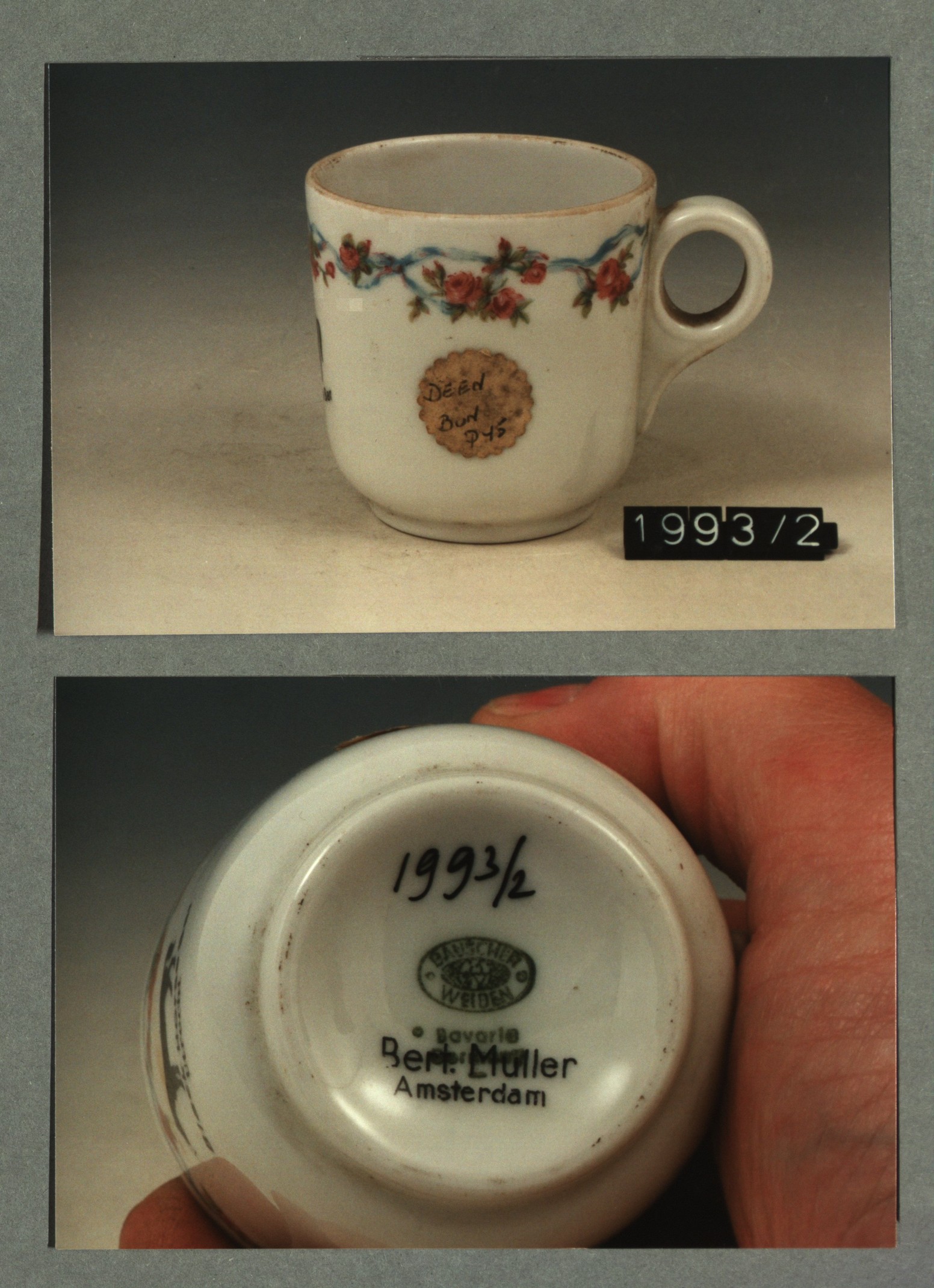 Kop met opschrift met decor E wapen