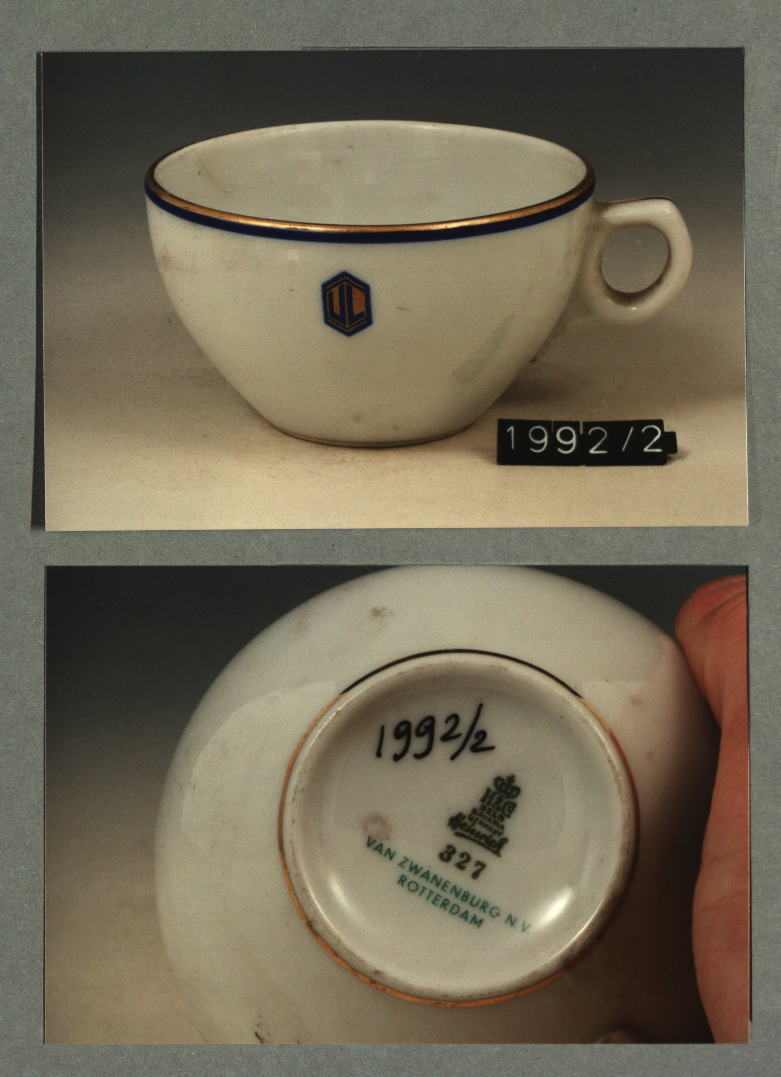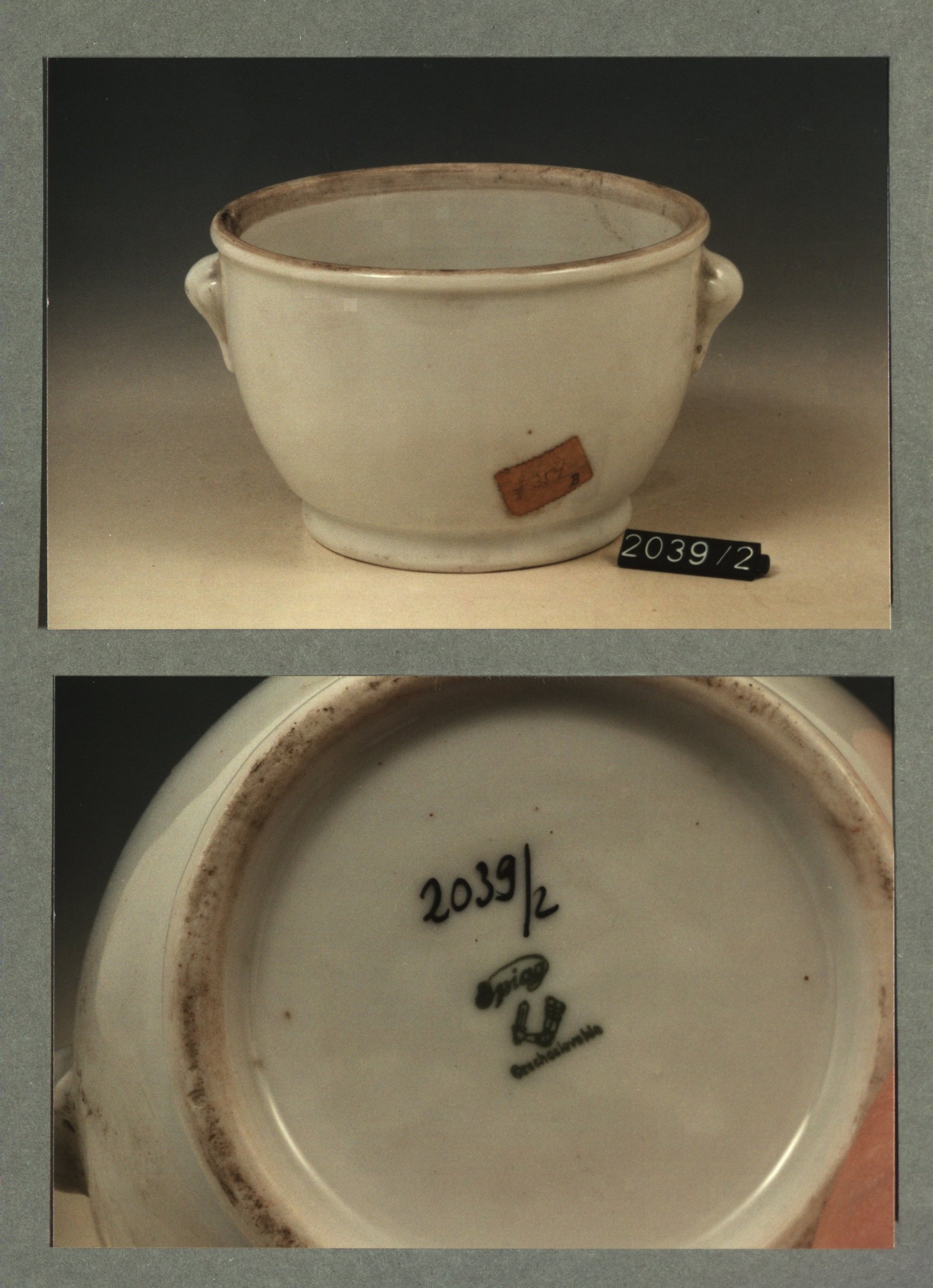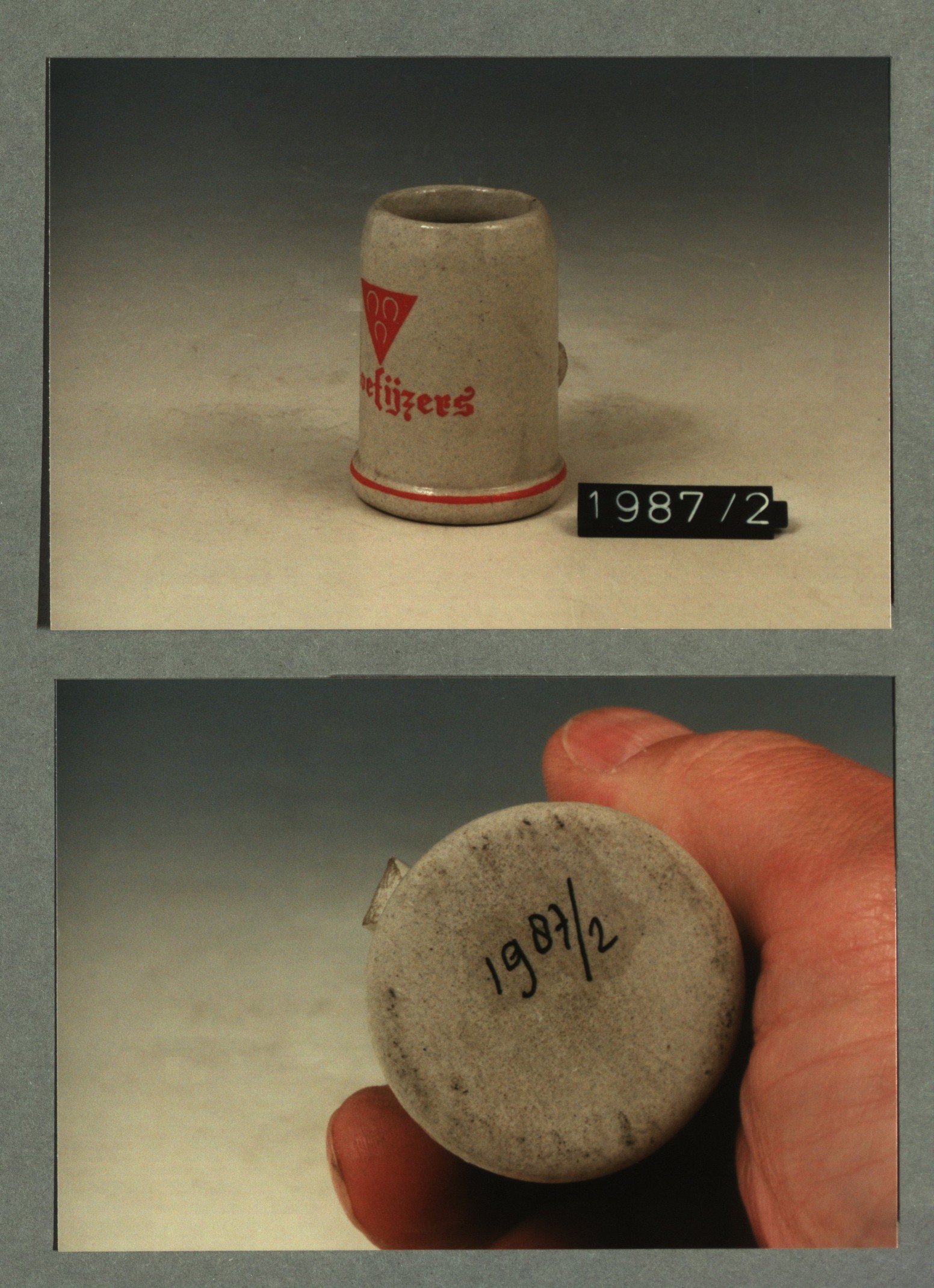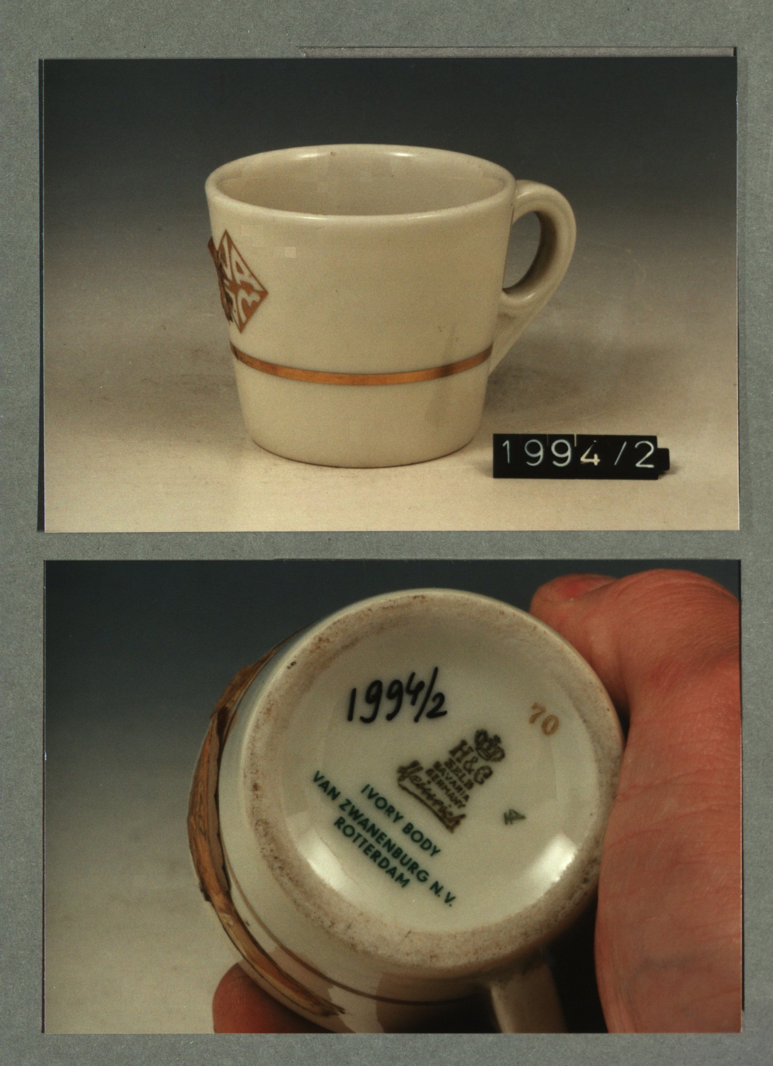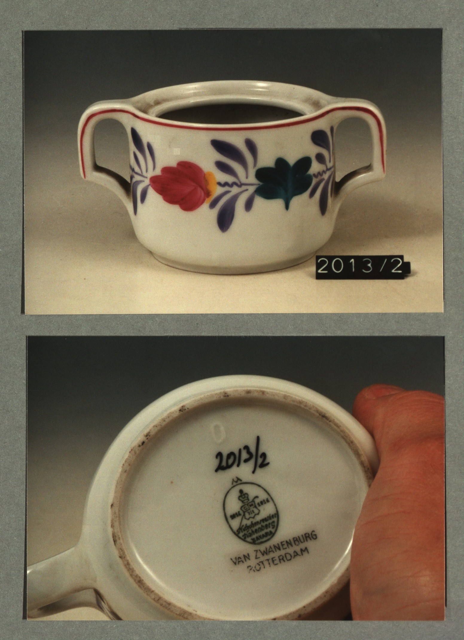 Kop met opschrift met decor E wapen