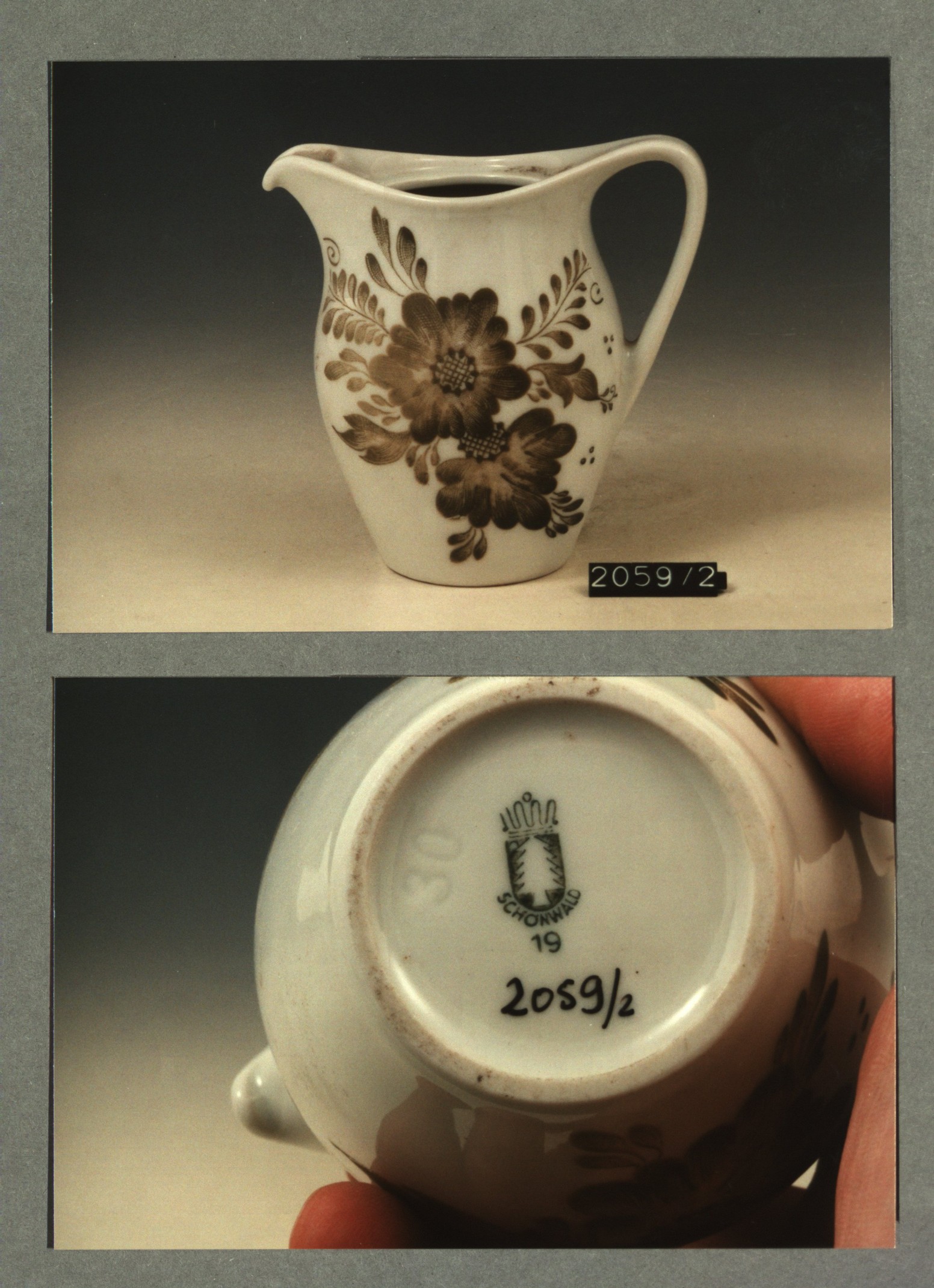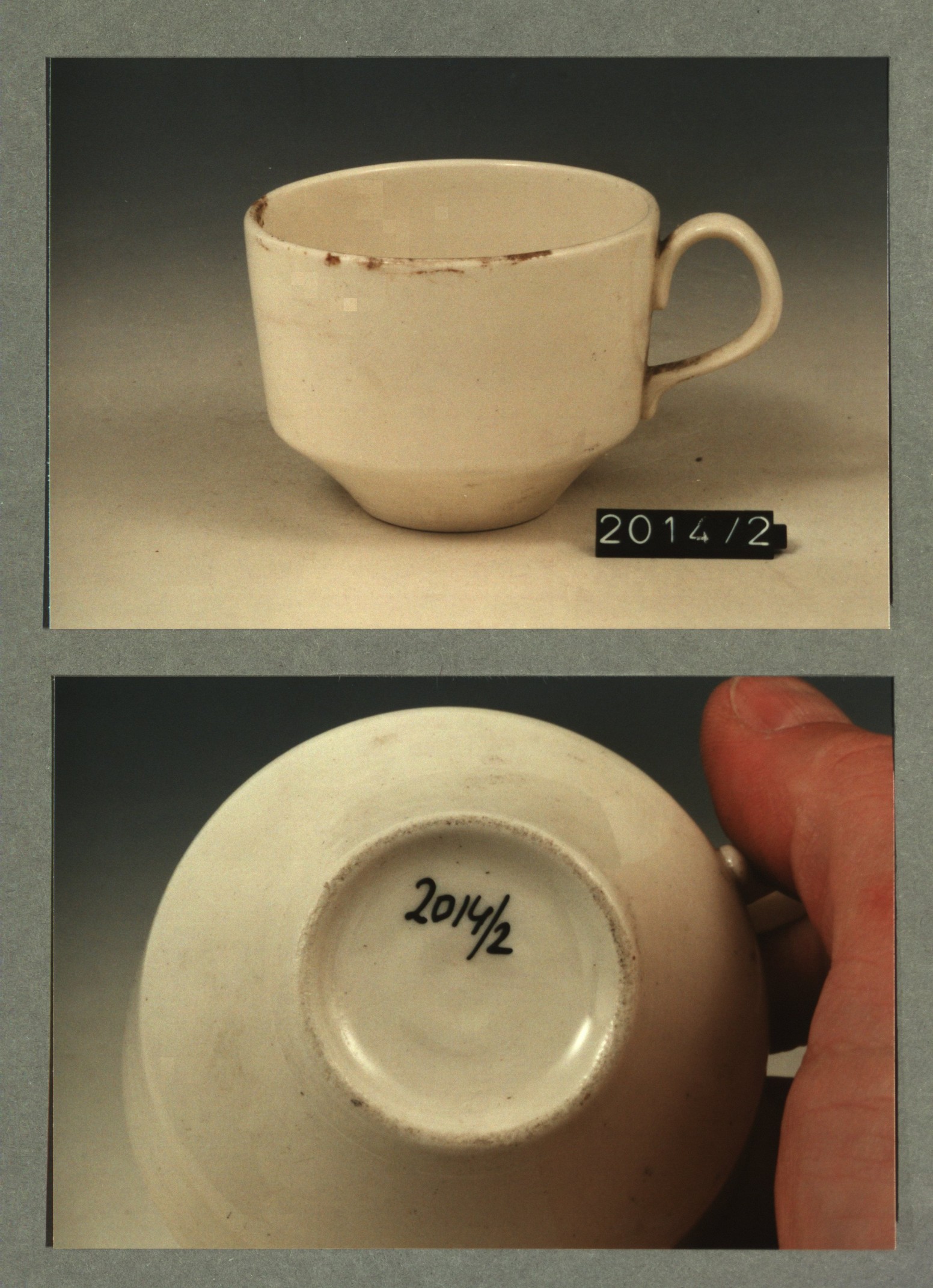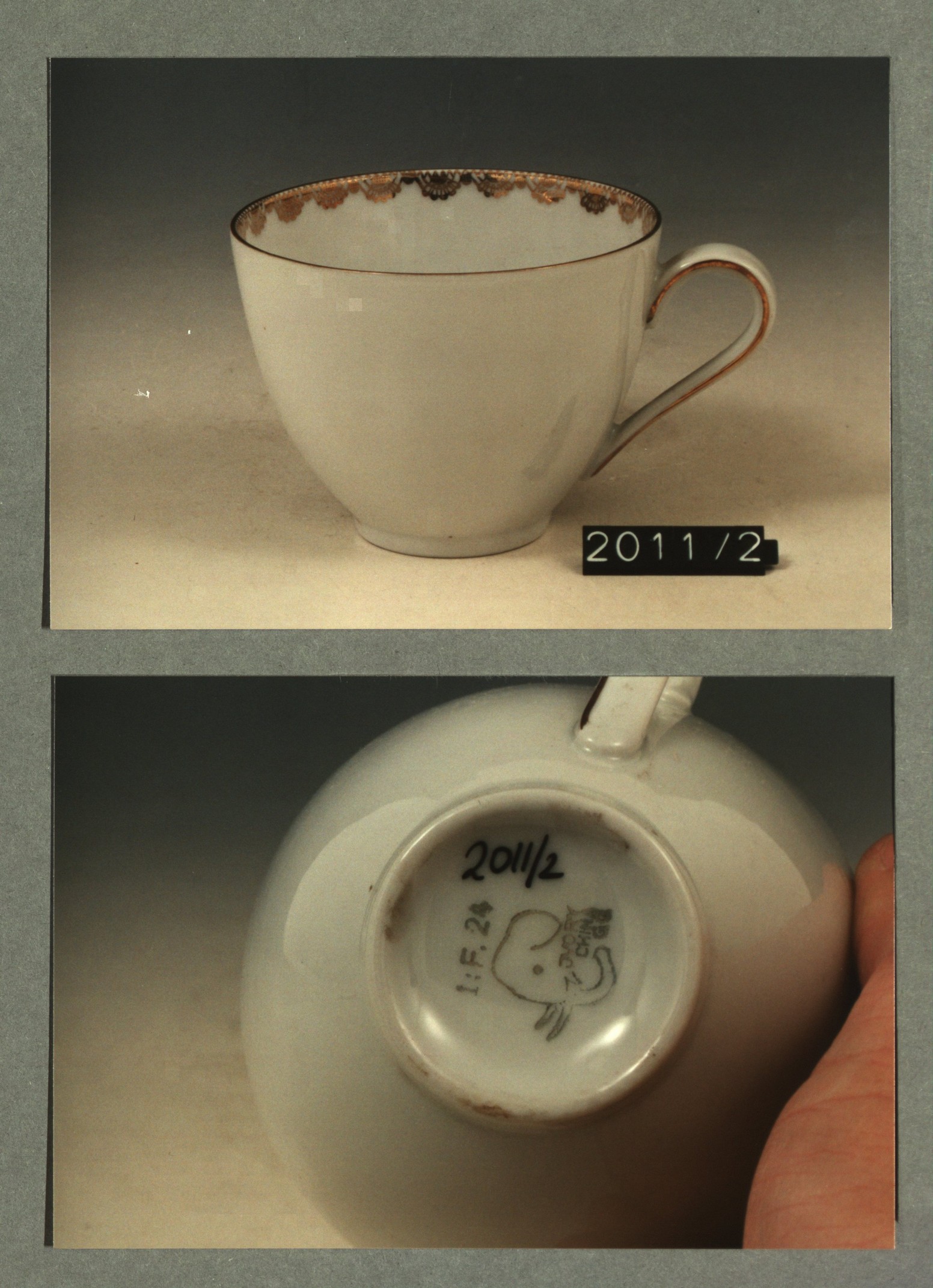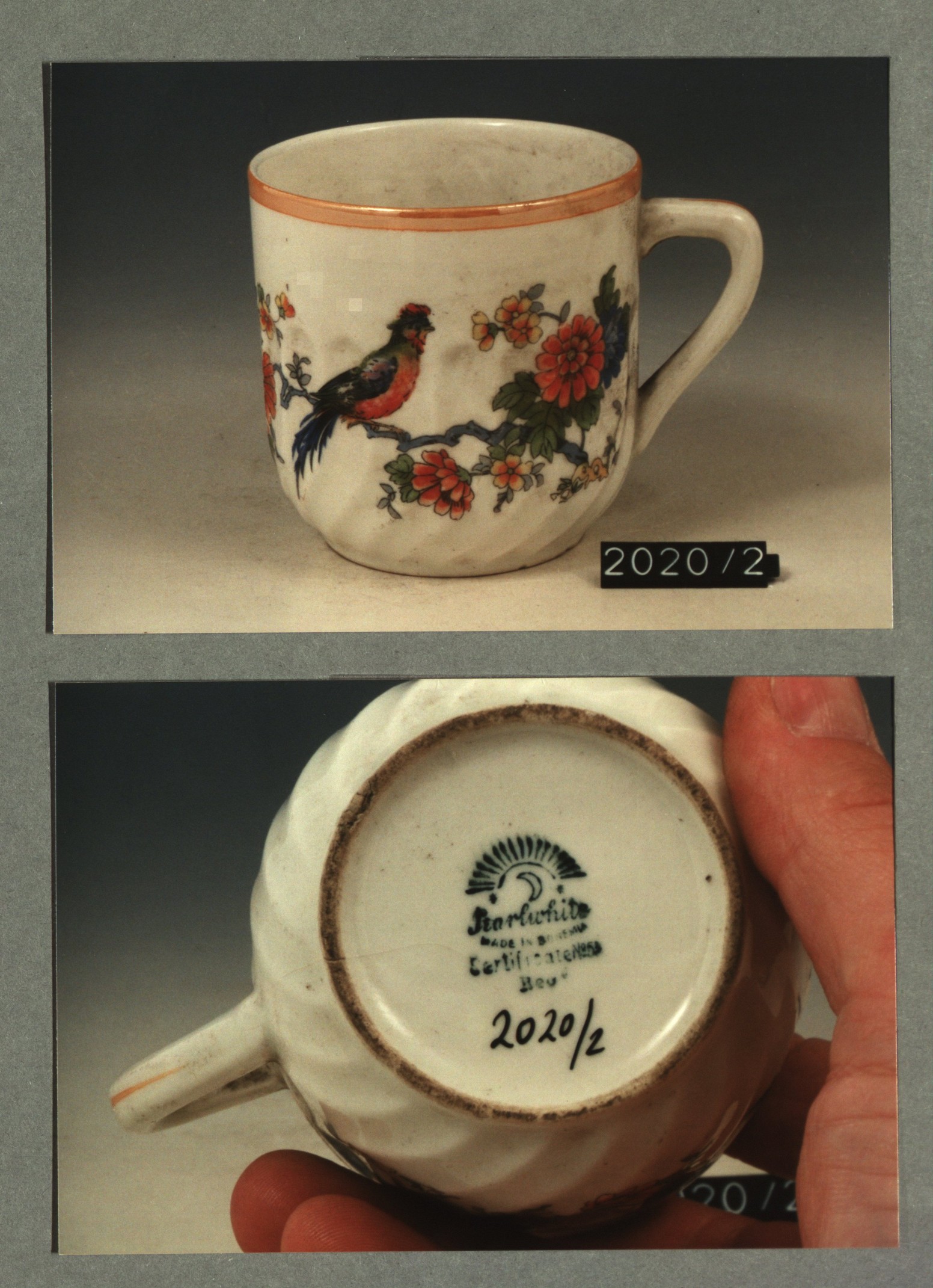 Kop met opschrift met decor E wapen