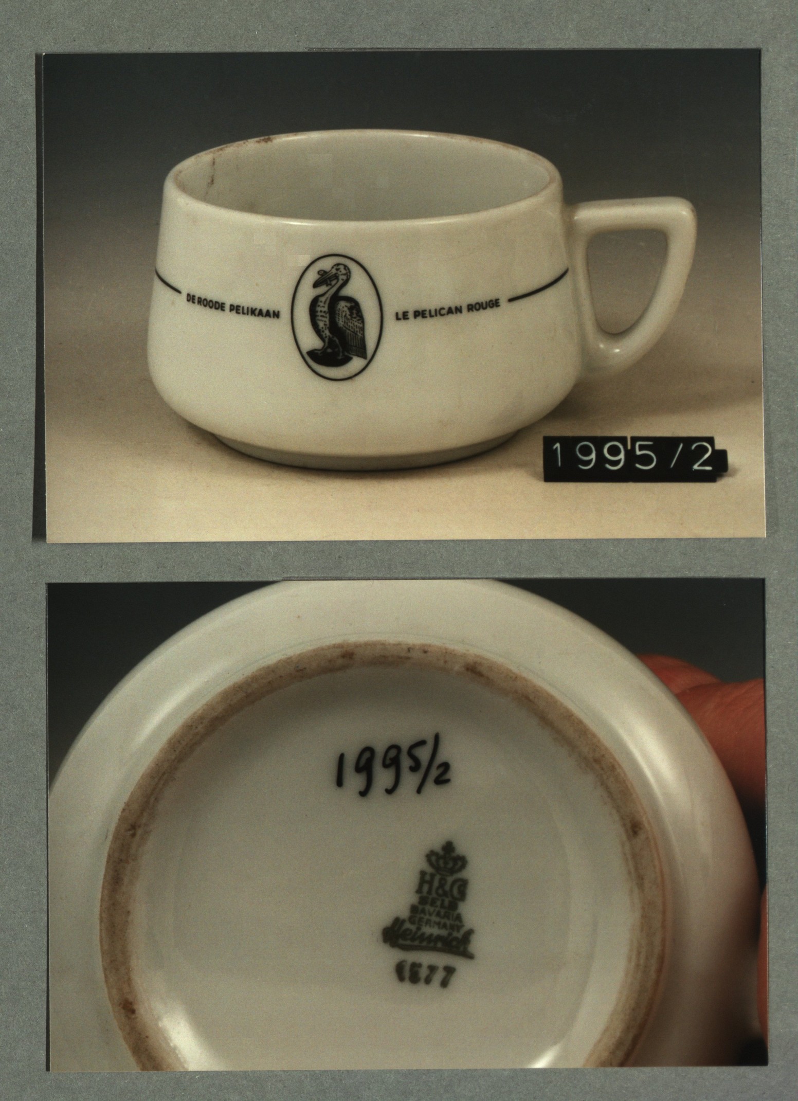Kop met opschrift met decor De roode pelikaan/le pel...