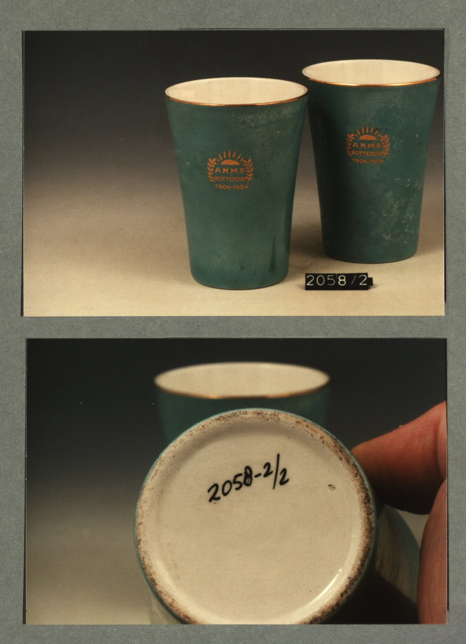 Beker met opschrift met decor A.N.M.B Rotterdam 1904...