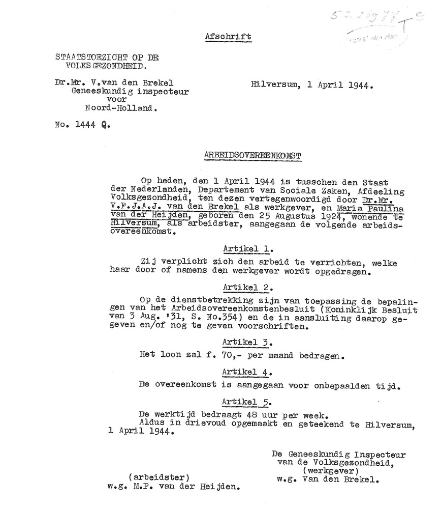 pensioengegevens mejuffrouw M.P. Loeven van der Heyden