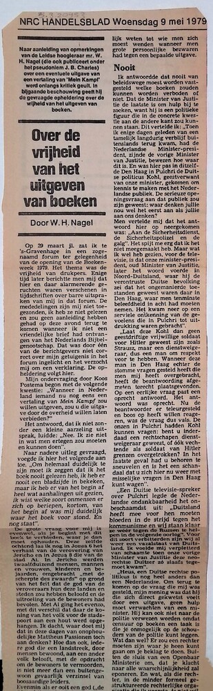 krantenartikel 'Over de vrijheid van het uitgeven va...