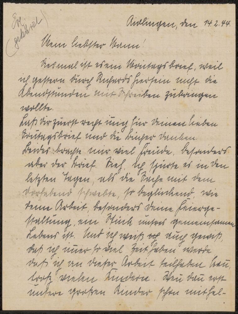 Brief aan Hubert van Ella 14-02-1944