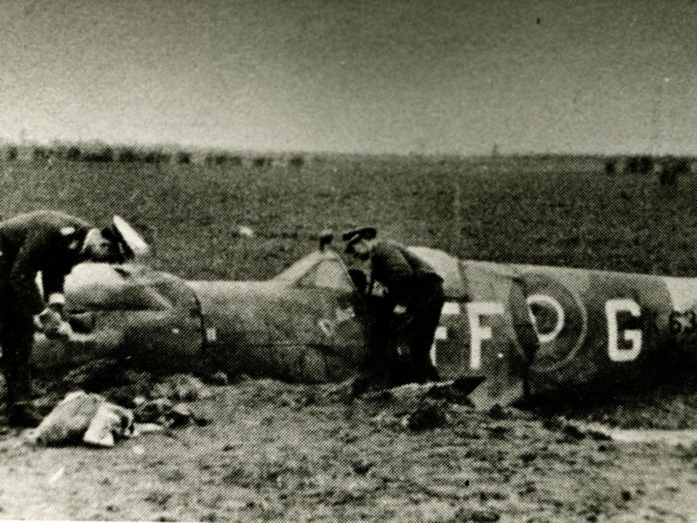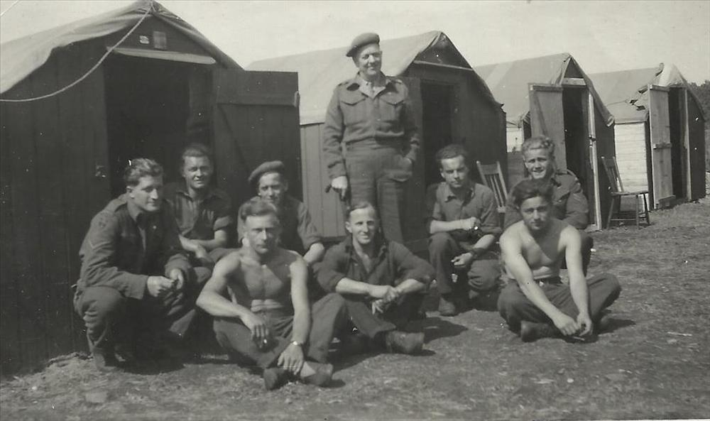 Foto van man in R.A.F. uniform zittend in een open d...