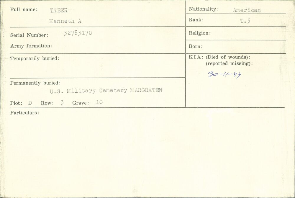 Oorlogsgraven comité kaarten Achternamen T