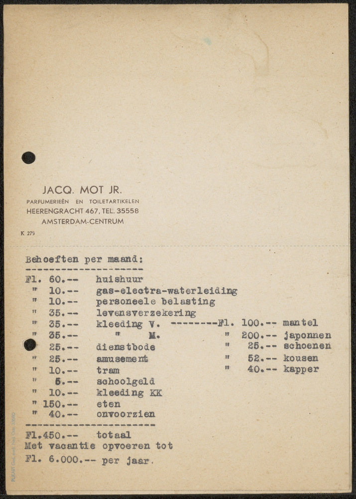 Aan dhr Avis te Amsterdam