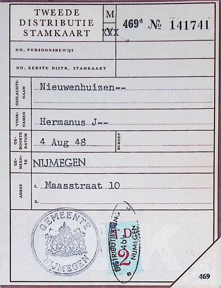 Tweede Distributiestamkaart van : De Jager, Catharina