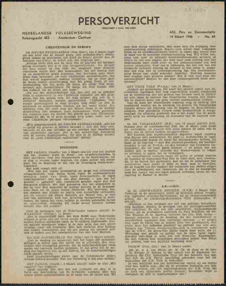 Algemeen Nederlandsch Persbureau, mededelingen, 20 m...