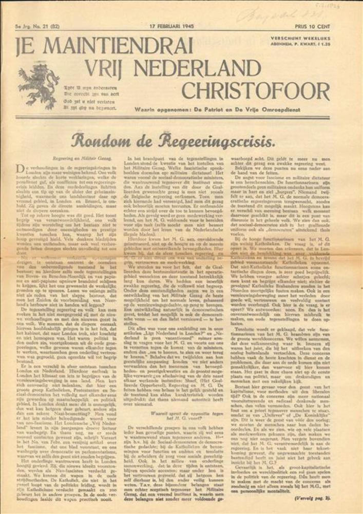 Je Maintiendrai / Christofoor / Vrij Nederland, 5e J...