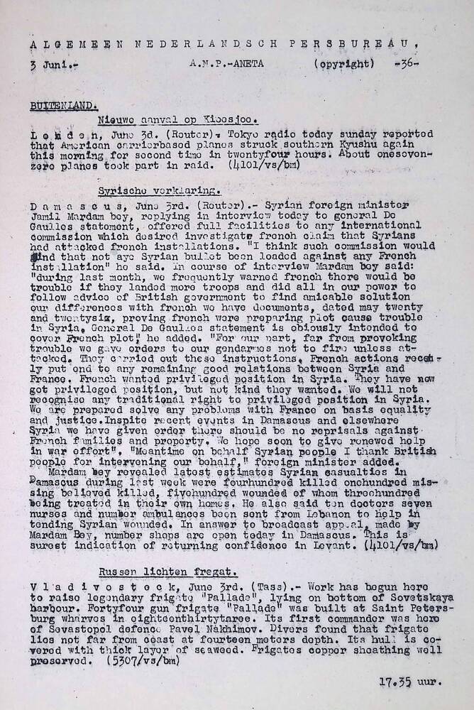 Algemeen Nederlandsch Persbureau, mededelingen, 1 ju...