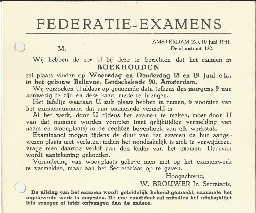 Kennisgeving Federatie Examens te Amsterdam voor Mej...
