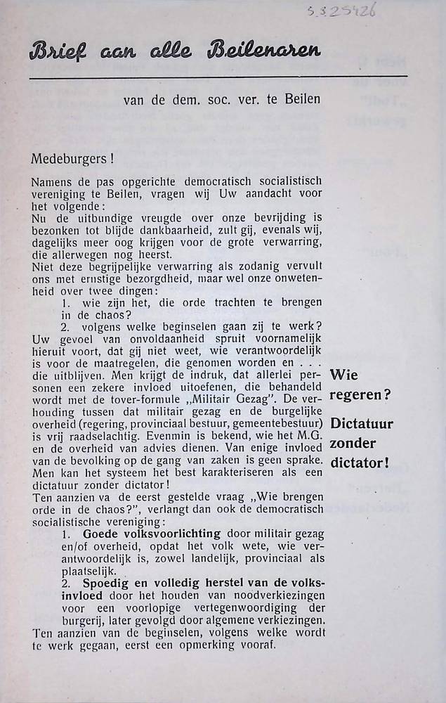 Brief aan alle Beilenaren van de Dem. Soc. Ver. te B...