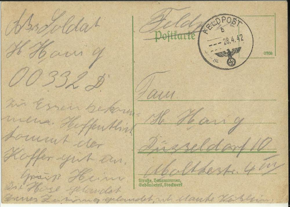 Briefkaart van Heinrich (soldaat) Honig aan Frau Hon...