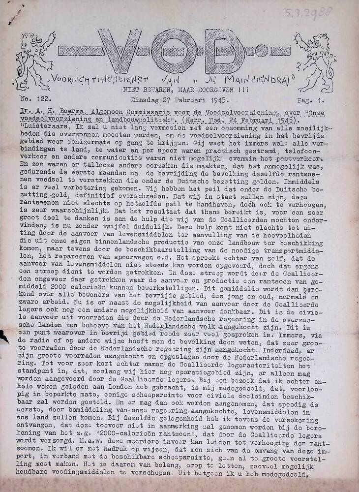 V.O.D. Voorlichtingsdienst van Je Maintiendrai, No. ...