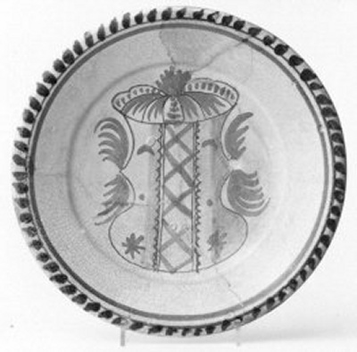 Majolica schotel met een wapen-decor