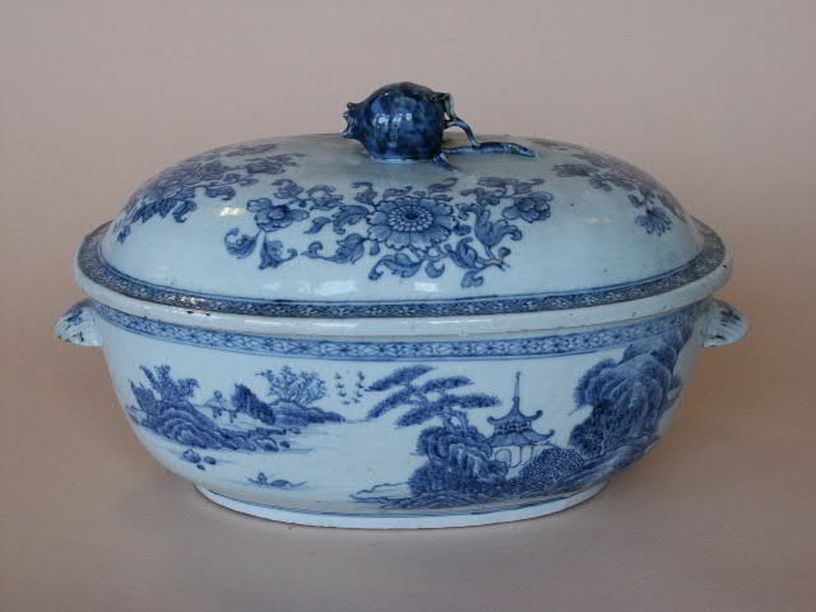 Terrine met deksel met decor van waterlandschap