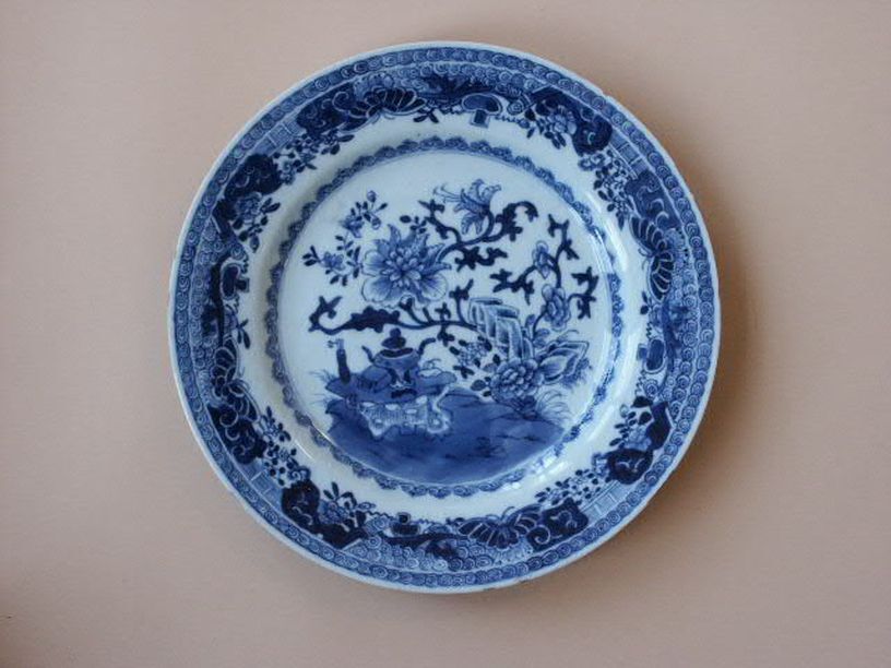 Serie van 18 borden met decor van 8 vlakken met bloe...