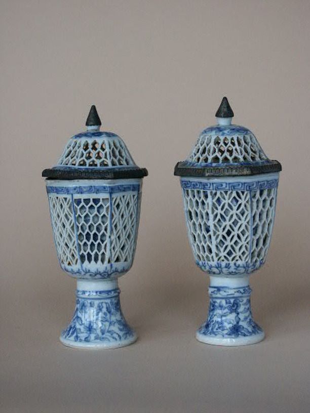 Twee theebussen met dop met rechthoekige vorm en dec...
