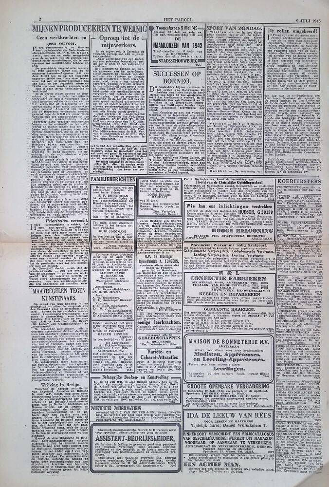 Het Parool, 9 juli 1945, 5e Jaargang, No 153