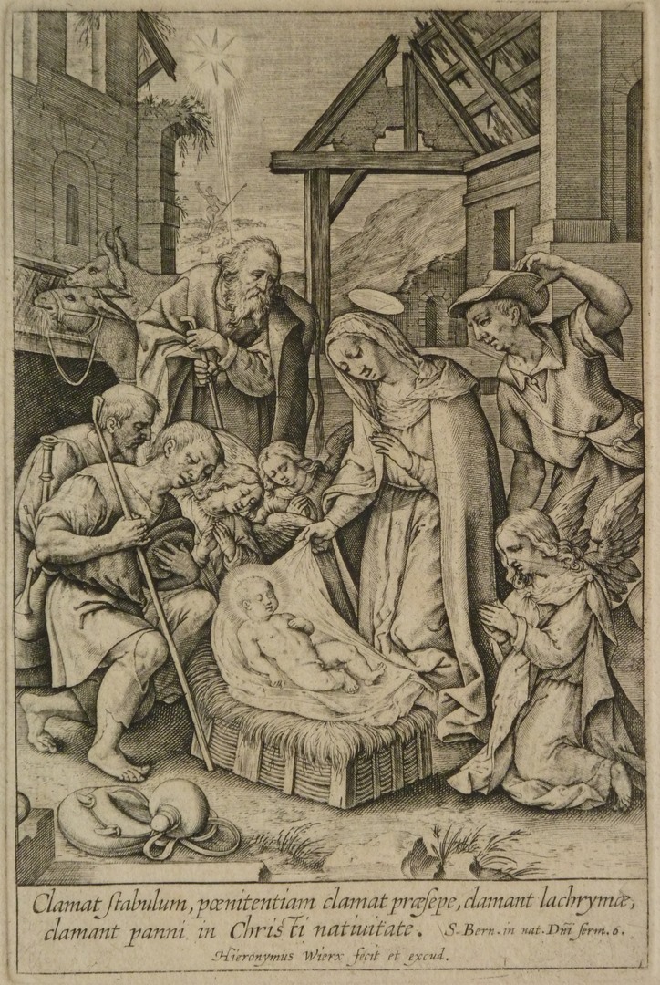 Aanbidding van de herders, prent uit bijbel