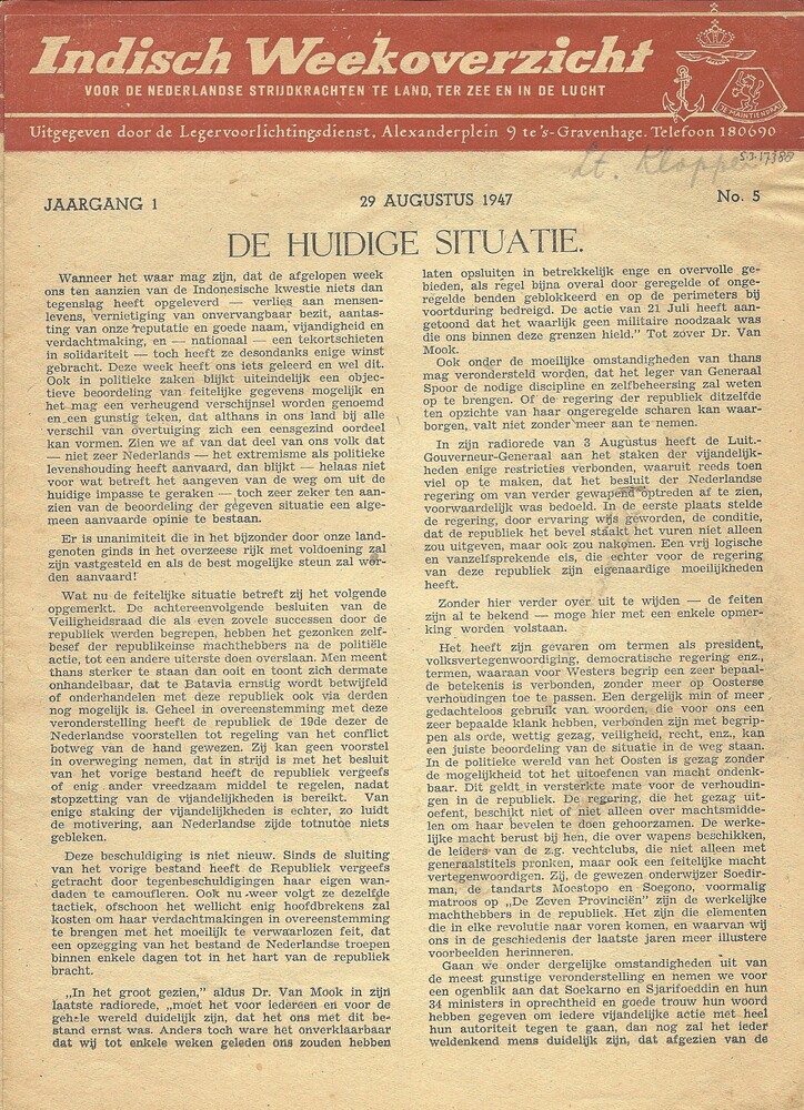 Indisch Weekoverzicht voor de Nederlandse strijdkrac...