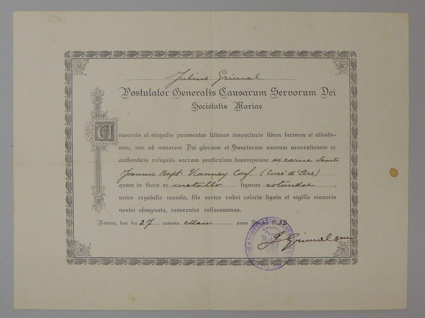 Reliekmedaillon met reliek van pastoor van Ars (Joan...