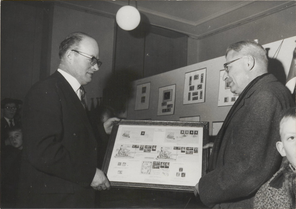 Overhandiging van de eerste dag-enveloppen van de Ja...