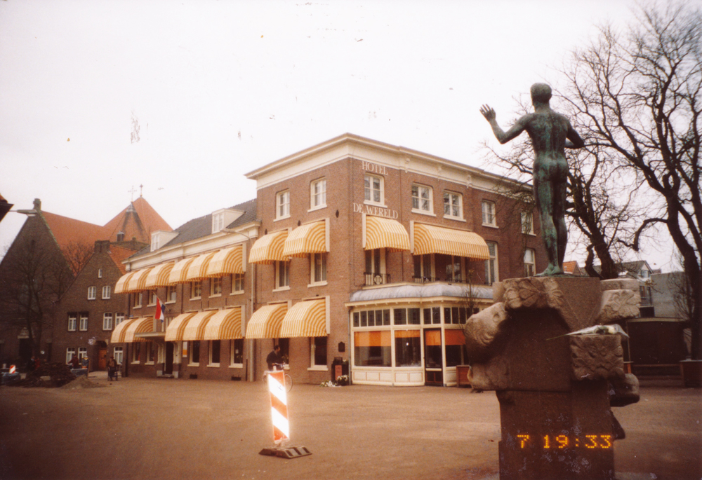 Foto van een ansichtkaart, voorstellende de Markt me...