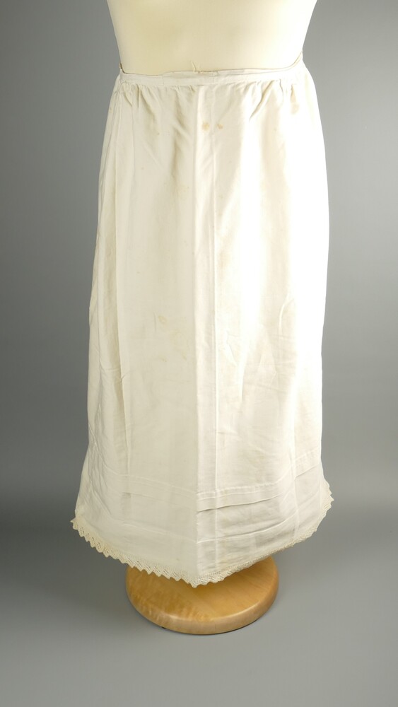 Onderrok handgenaaid, met machinale broderie kant.